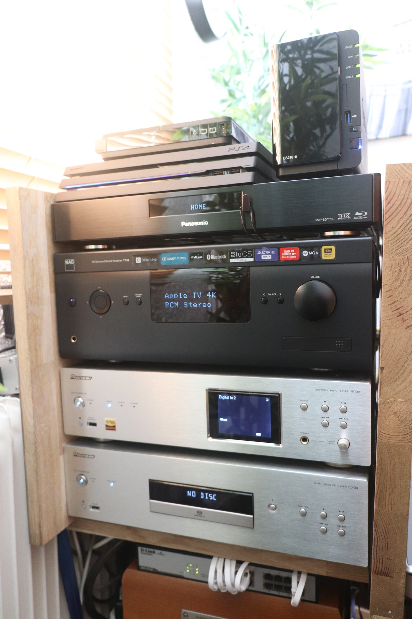 beau rack, en tout cas c'est bien rangé !!et c'est quand plus agréable de voir un rack en bois plutôt qu'une baie 19" alu !